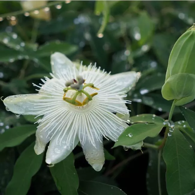 Nouvelle variété de passiflore qui se remarque par sa fleur entièrement blanche et surtout parfumée.
