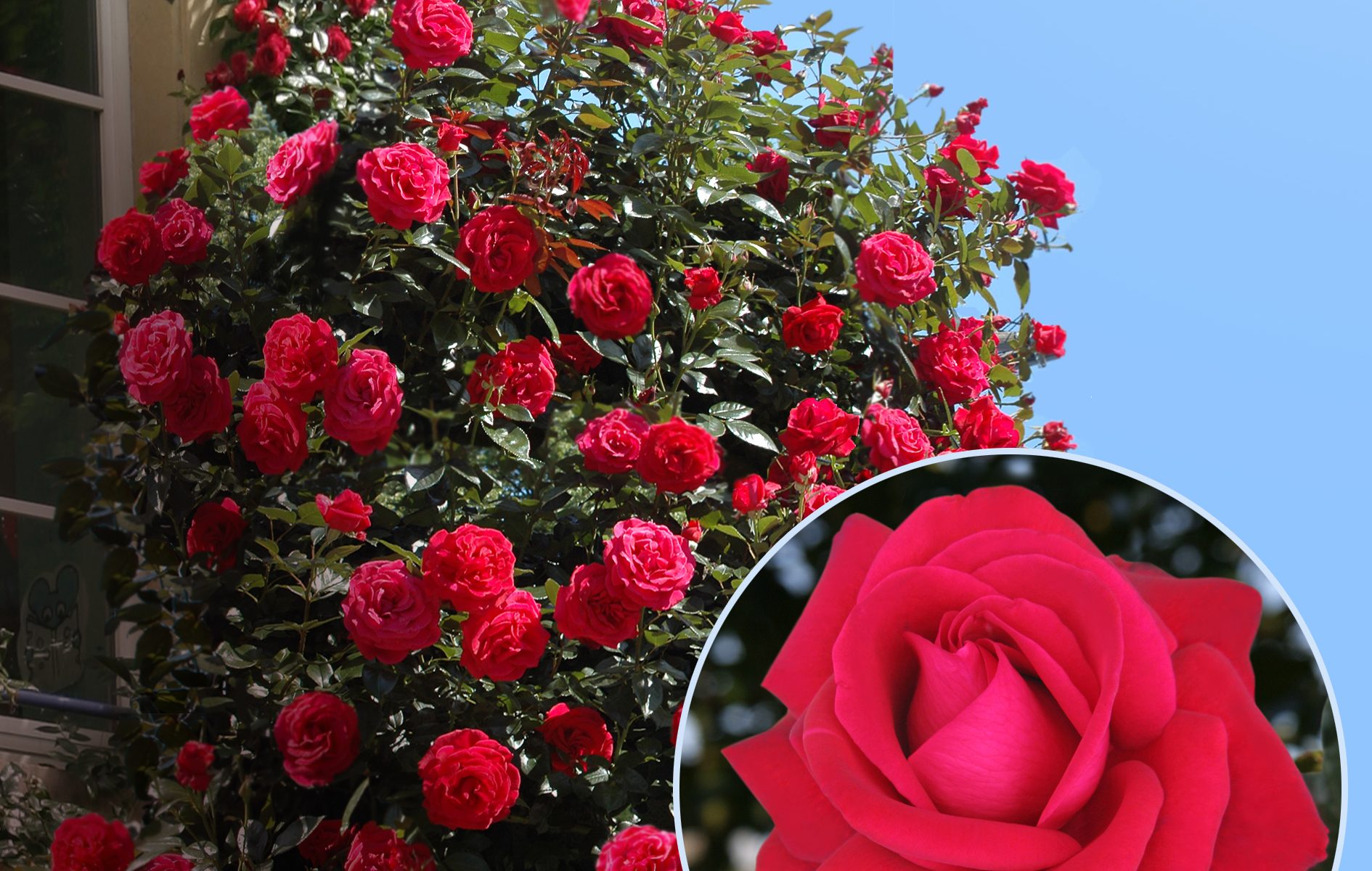 Le rosier Le Grand Huit® Gpt, dont la dénomination variétale est Adabaring, est une variété de rosier arbuste très imposant qui peut atteindre jusqu’à 3 mètres de hauteur. Ses fleurs sont d’un rouge cardinal intense et mesurent environ 12 centimètres de diamètre. Elles sont composées d’environ 35 pétales et dégagent un parfum puissant et enivrant. Ce rosier appartient à la gamme NIRPorizon, qui se caractérise par une végétation exubérante et un feuillage rouge pruiné qui devient vert foncé.