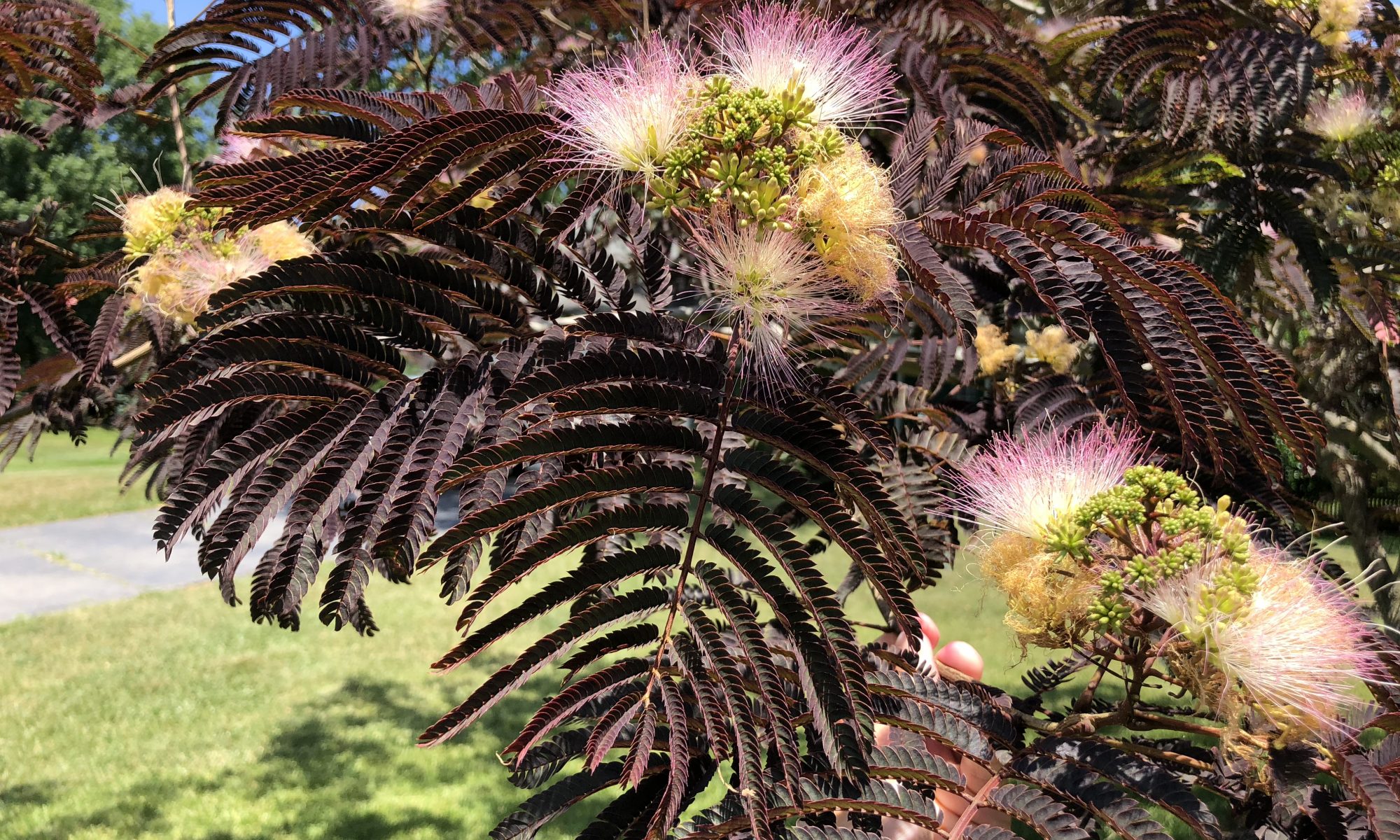 L’Albizia julibrissin est un petit arbre caduc de la famille des fabacées. Son aire d’origine s’étend de l’Iran (jadis appelé Perse) à l’est de la Chine. On l’appelle aussi Acacia ou Mimosa de Constantinople.
