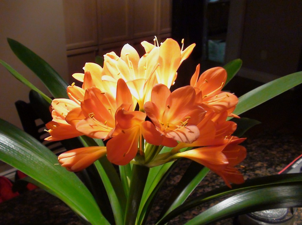 Originaire d’Afrique du Sud, le clivia est appréciée pour ses longues feuilles vertes et ses fleurs vives qui peuvent varier du jaune au rouge-orange. Il est souvent cultivé comme plante d’intérieur dans les climats tempérés, car il nécessite un minimum de soins. Les fleurs du clivia apparaissent généralement au printemps, et forment un beau contraste avec le feuillage vert foncé. C’est une plante populaire pour ajouter de la couleur et de la vie aux espaces intérieurs.