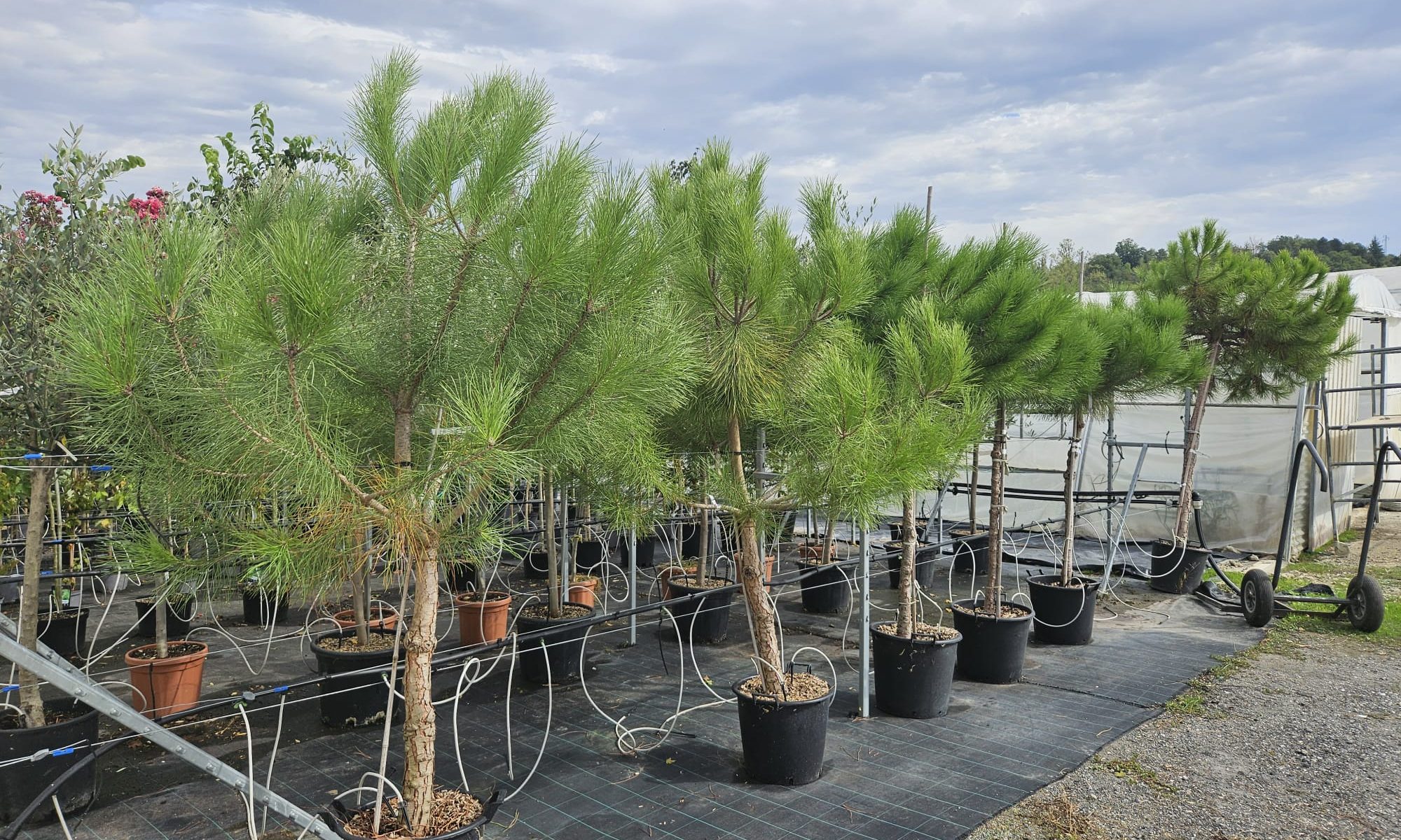 Le PINUS pinea ou PIN PARASOL est un conifère persistant, d’une hauteur adulte de 20 m et plus, à la cîme arrondie. Feuilles souples et longues, vert foncé. Ecorce brun rougeâtre. Ses cônes produisent des graines (pignons) comestibles, très appréciées en cuisine. Il accepte bien tous les sols poreux, résiste bien à la pollution des villes. Le planter en situation abritée au nord de la Loire car il craint les fortes gelées. Le PINUS pinea peut être utilisé en isolé, en groupe et idéal comme arbre d’ombrage.