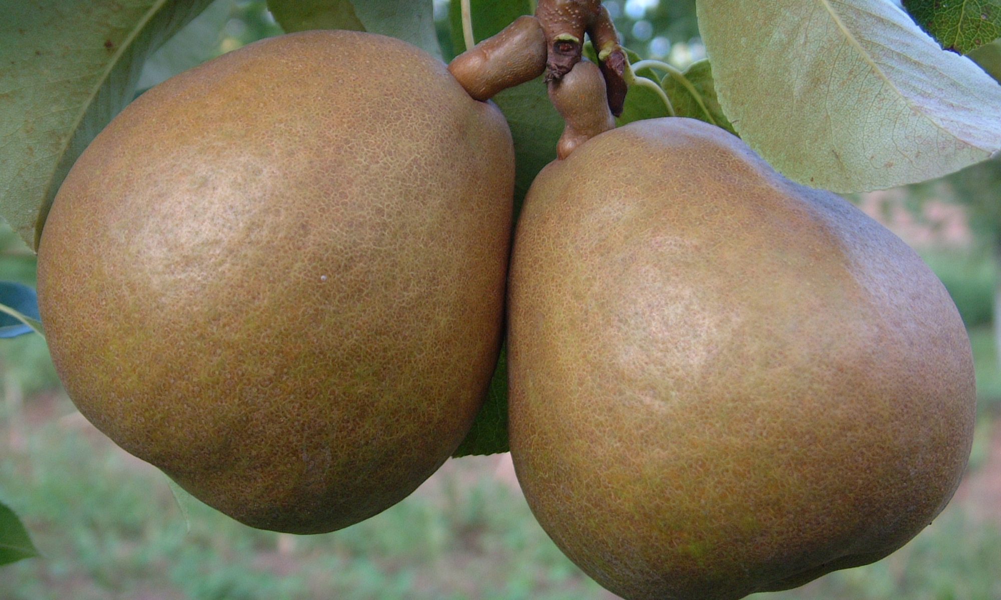 Pyrus communis Angelys, variété nouvelle de l’Inra d’Angers, croisement entre Doyenne du comice et Doyenne d’hiver..